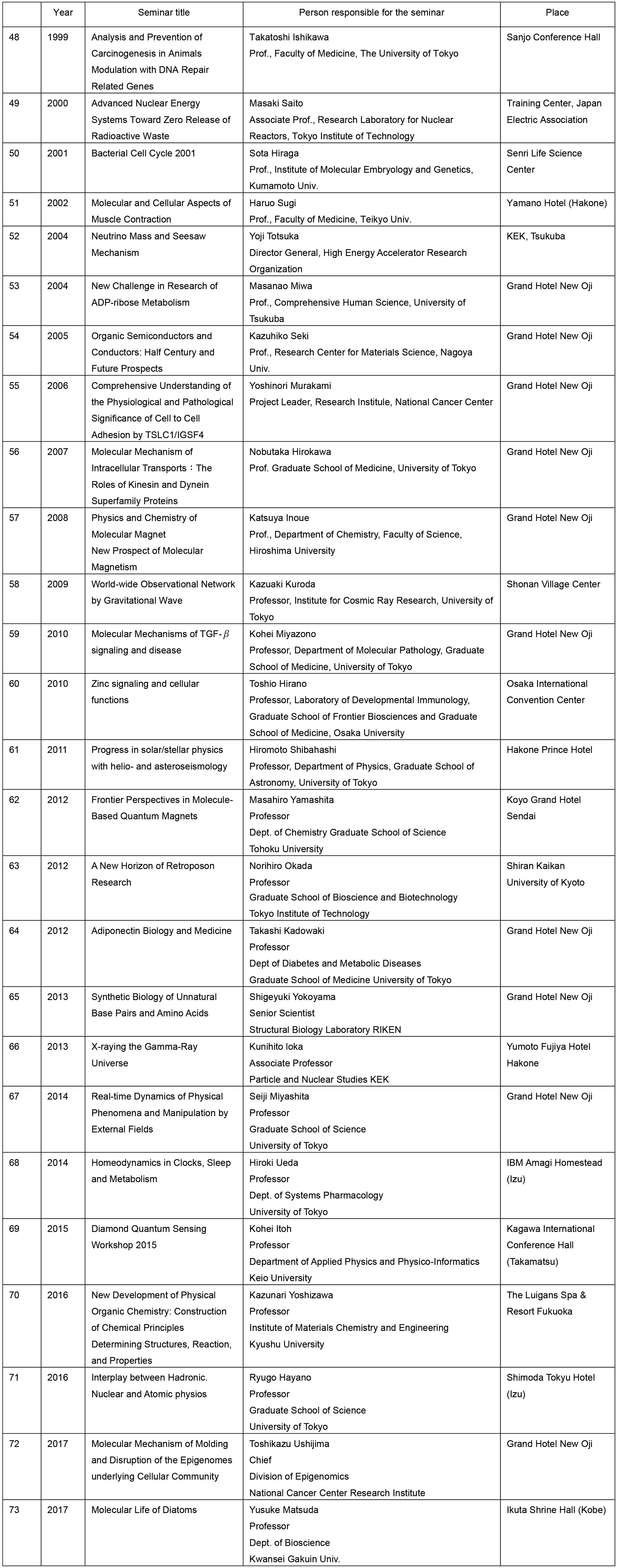 48th (1999) ~ 73th (2017)